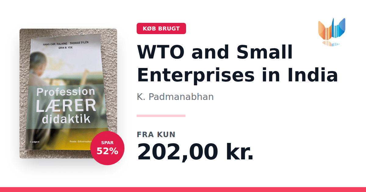 Lige nu kan du købe "WTO and Small Enterprises in India" af K. Padmanabhan til kun 202,00 kr. Du sparer hele 52% af nyprisen! Bogen du ser her er brugt, og i god stand. Vi har i øjeblikket kun et enkelt eksemplar til salg af "WTO and Small Enterprises in India", så slå til mens du kan!