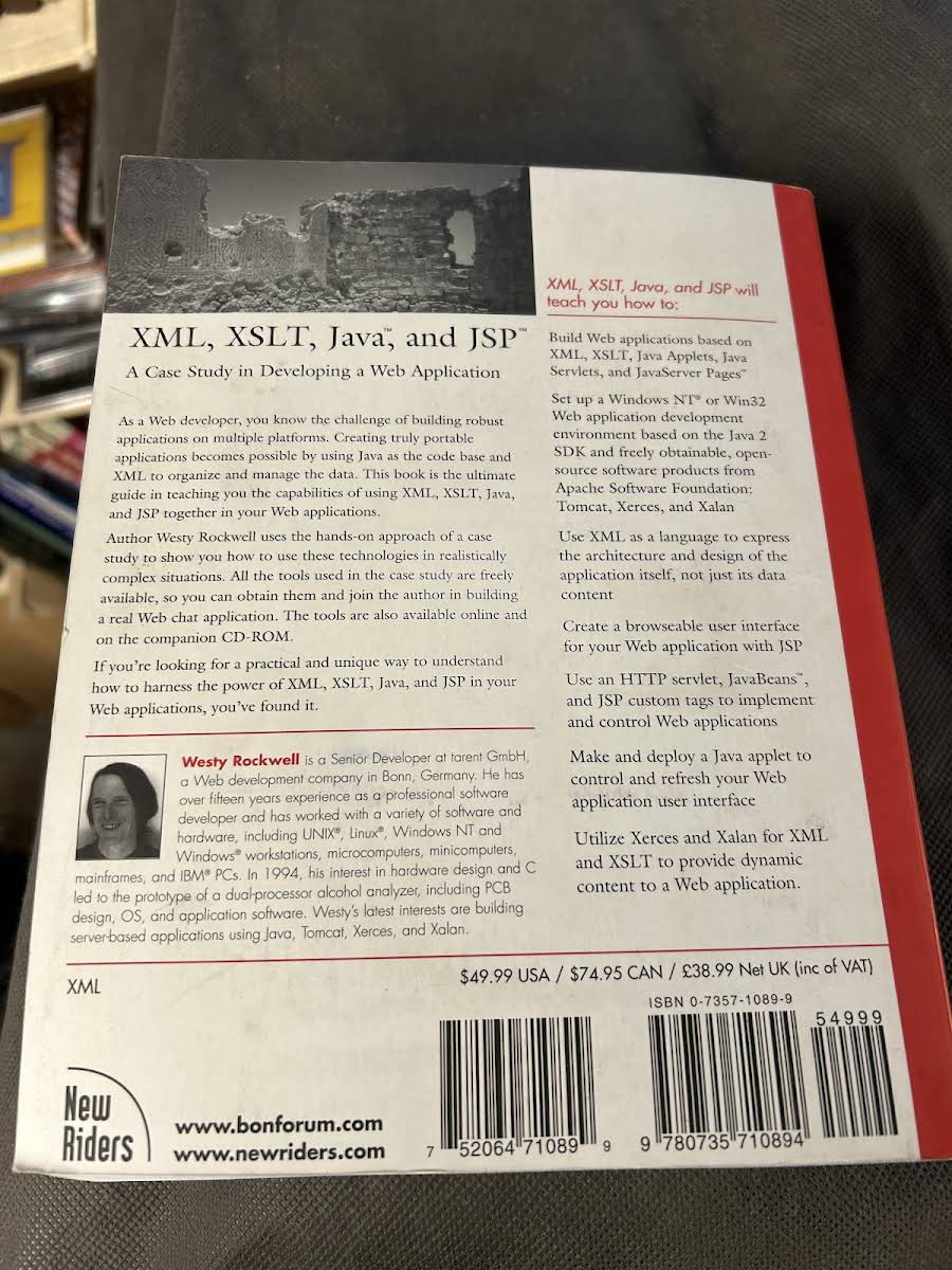 • XML, XSLT, Java, and JSP, Westy Rockwell, 9780735710894