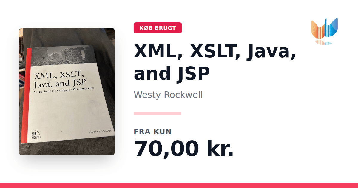 Lige nu kan du købe "XML, XSLT, Java, and JSP" af Westy Rockwell til kun 70,00 kr. Bogen du ser her er brugt, og i god stand. Vi har i øjeblikket kun et enkelt eksemplar til salg af "XML, XSLT, Java, and JSP", så slå til mens du kan!