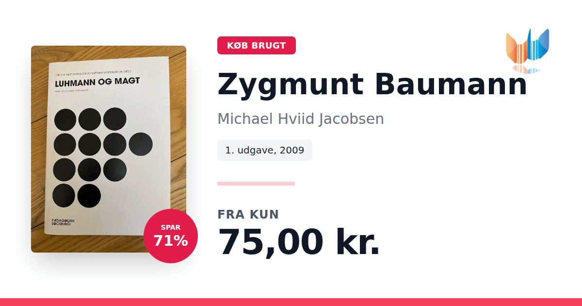 Lige nu kan du købe "Zygmunt Baumann" af Michael Hviid Jacobsen til kun 75,00 kr. Du sparer hele 71% af nyprisen! Bogen du ser her er brugt, og i perfekt stand. Vi har i øjeblikket kun et enkelt eksemplar til salg af "Zygmunt Baumann", så slå til mens du kan!