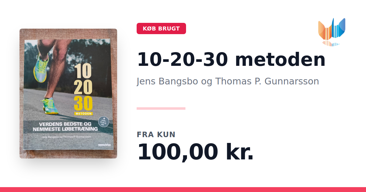 Lige nu kan du købe "10-20-30 metoden" af Jens Bangsbo og Thomas P. Gunnarsson til kun 100,00 kr. Bogen du ser her er brugt, og i perfekt stand. Vi har i øjeblikket kun et enkelt eksemplar til salg af "10-20-30 metoden", så slå til mens du kan!
