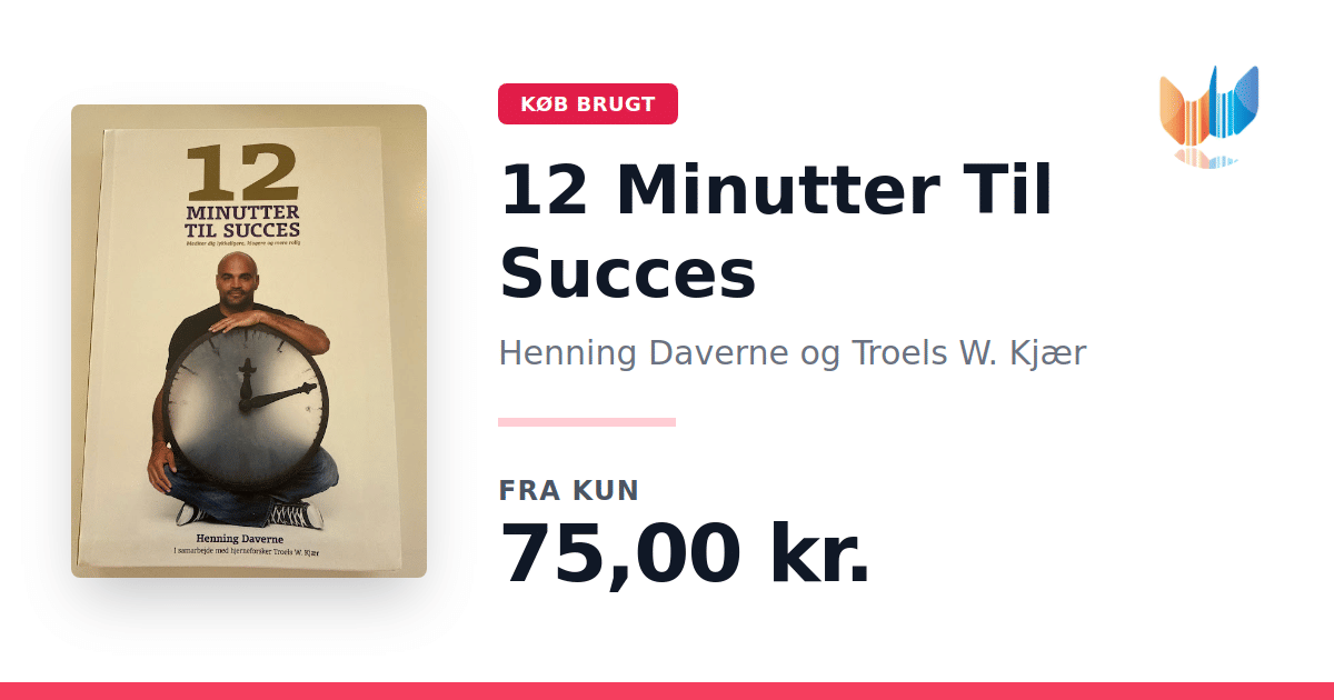 Lige nu kan du købe "12 Minutter Til Succes" af Henning Daverne og Troels W. Kjær til kun 75,00 kr. Bogen du ser her er brugt, og i perfekt stand. Vi har i øjeblikket kun et enkelt eksemplar til salg af "12 Minutter Til Succes", så slå til mens du kan!