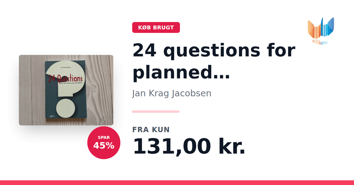 Lige nu kan du købe "24 questions for planned communication" af Jan Krag Jacobsen til kun 131,00 kr. Du sparer hele 45% af nyprisen! Bogen du ser her er brugt, og i perfekt stand. Vi har i øjeblikket kun et enkelt eksemplar til salg af "24 questions for planned communication", så slå til mens du kan!