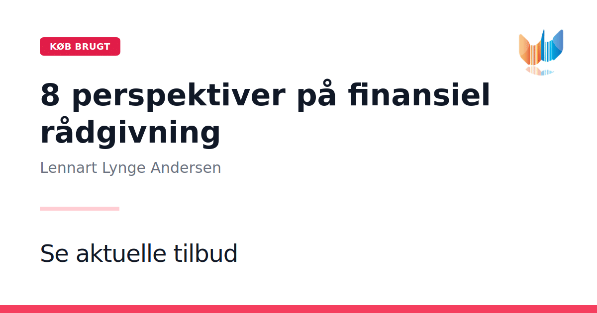 "8 perspektiver på finansiel rådgivning" er niende bind i et lærebogssæt tilrettelagt af Center for kreditret og kapitalmarkedsret på Handelshøjskolen i København. Bogen udspringer af Kreditretsprojektet (2002-2007) og undersøger grundigt de komplekse kreditretlige forhold, der opstår i mødet mellem finansielle institutioner og deres kunder. Med sit fokus på finansiel rådgivning præsenterer værket otte centrale perspektiver, der forener teoretiske indsigter med praktiske erfaringer. Bidrag fra en række eksperter inden for området giver både studerende og undervisere et solidt grundlag for videre forståelse af de rette relationer og de dynamikker, der præger den finansielle verden. Udgivet i 2005 i paperback-format af forlaget Gjellerup, rummer denne første udgave et væsentligt redskab for dem, der søger en nuanceret og fagligt funderet tilgang til kreditret og kapitalmarkedsret.