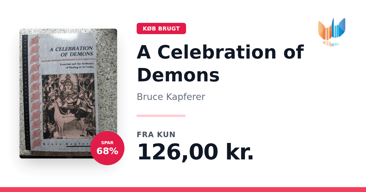 Lige nu kan du købe "A Celebration of Demons" af Bruce Kapferer til kun 126,00 kr. Du sparer hele 68% af nyprisen! Bogen du ser her er brugt, og i god stand. Vi har i øjeblikket kun et enkelt eksemplar til salg af "A Celebration of Demons", så slå til mens du kan!