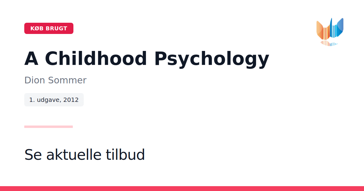 A Childhood Psychology undersøger de grundlæggende spørgsmål og antagelser inden for barndomspsykologi. Dion Sommer præsenterer modige, nye perspektiver og tilbyder original analyse gennem en stærk tværfaglig tilgang. Med opdaterede udviklinger og klar formidling stiller denne 2. udgave (2012, 304 sider) skarpt på moderne forestillinger om barndom, gennemgår internationale forskningstendenser og udfordrer etablerede paradigmer. Et vigtigt værk for studerende og forskere i psykologi, antropologi, kulturstudier og sociologi.