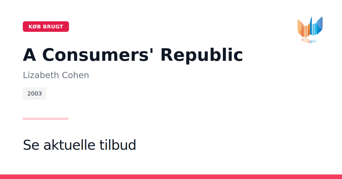 A Consumers' Republic, a 576-page paperback published by Vintage Books in 2003, is presented in clear English by author Lizabeth Cohen. This edition is brought to life with careful attention to detail and precision throughout its engaging narrative. Enhancing the reading experience, the book features 64 illustrations and 3 maps that complement its richly designed format. ISBN 9780375707377 marks this distinguished work as a noteworthy addition to any collection.
