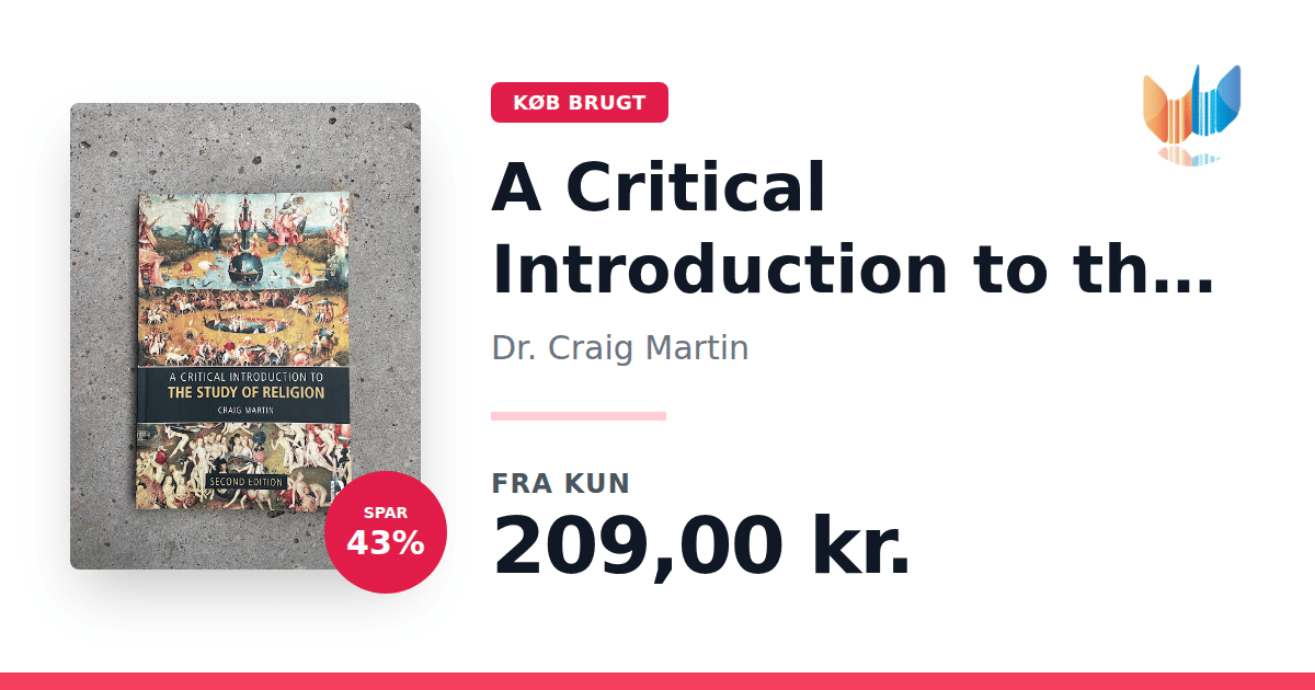Lige nu kan du købe "A Critical Introduction to the Study of Religion" af Dr. Craig Martin til kun 209,00 kr. Du sparer hele 43% af nyprisen! Bogen du ser her er brugt, og i perfekt stand. Vi har i øjeblikket kun et enkelt eksemplar til salg af "A Critical Introduction to the Study of Religion", så slå til mens du kan!