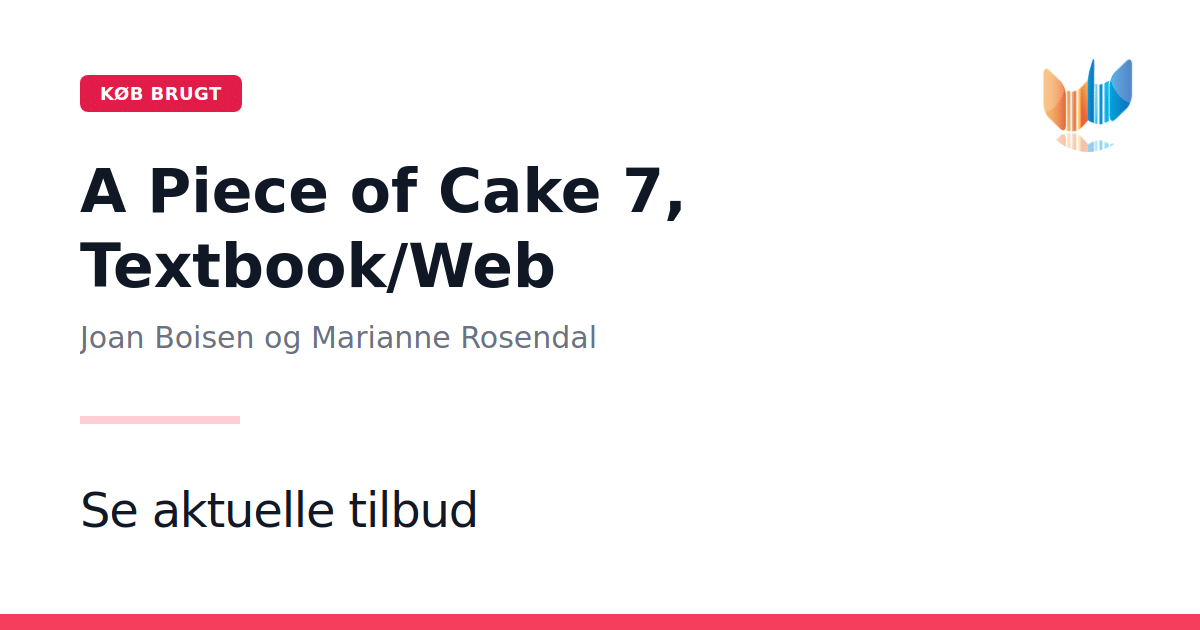 A Piece of Cake 7 er en engelskundervisningsbog (Textbook/Web) i 2. udgave, udgivet af Alinea i 2011. Den paperbackudgave omfatter 152 sider med varierede tekster og opgaver, der støtter elevernes engagement og faglige udvikling. Bogen er opdelt i syv units, herunder: Absolutely British Witches, the Occult and other Scary Stuff The First Americans Out and About Hawaii - the Aloha State Spotlight on School Canada from Sea to Sea Onlinedelen giver adgang til supplerende øvelser og interaktive aktiviteter, så eleverne kan træne læse-, skrive- og mundtlige færdigheder i et fleksibelt digitalt læringsmiljø.