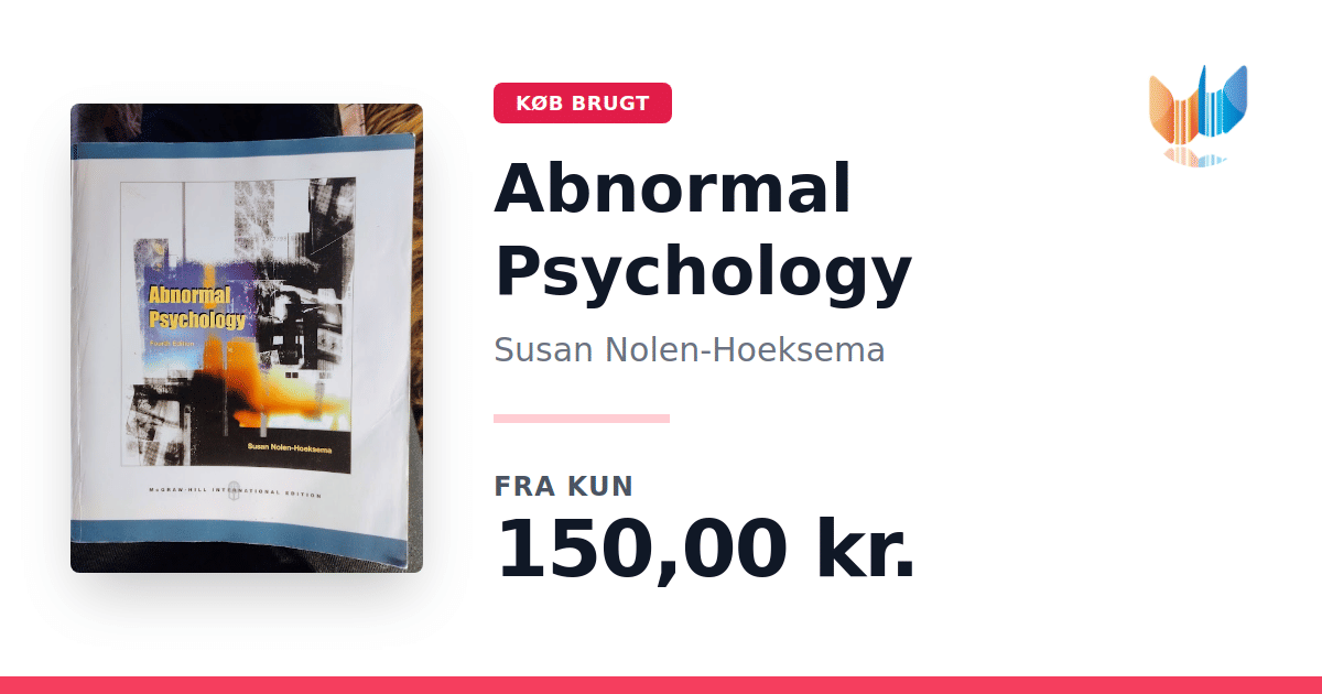 Lige nu kan du købe "Abnormal Psychology" af Susan Nolen-Hoeksema til kun 150,00 kr. Bogen du ser her er brugt, og i god stand. Vi har i øjeblikket kun et enkelt eksemplar til salg af "Abnormal Psychology", så slå til mens du kan!