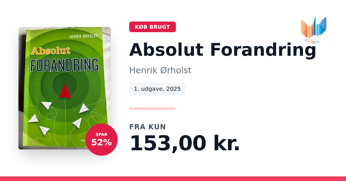 Lige nu kan du købe "Absolut Forandring" af Henrik Ørholst til kun 153,00 kr. Du sparer hele 52% af nyprisen! Bogen du ser her er brugt, og i god stand. Vi har i øjeblikket kun et enkelt eksemplar til salg af "Absolut Forandring", så slå til mens du kan!
