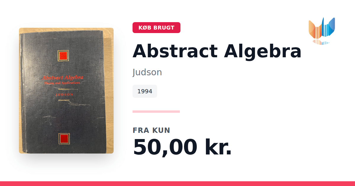 Lige nu kan du købe "Abstract Algebra" af Judson til kun 50,00 kr. Bogen du ser her er brugt, og i god stand. Vi har i øjeblikket kun et enkelt eksemplar til salg af "Abstract Algebra", så slå til mens du kan!