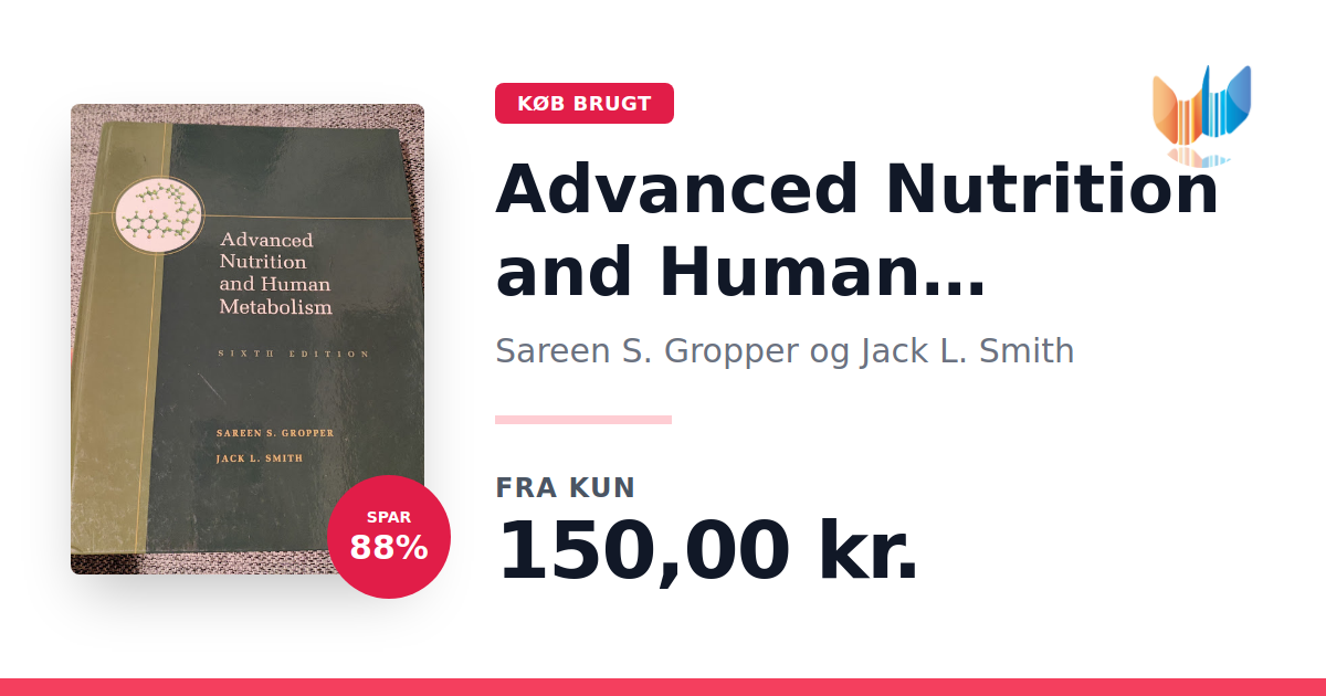 Lige nu kan du købe "Advanced Nutrition and Human Metabolism" af Sareen S. Gropper og Jack L. Smith til kun 150,00 kr. Du sparer hele 88% af nyprisen! Bogen du ser her er brugt, og i god stand. Vi har i øjeblikket kun et enkelt eksemplar til salg af "Advanced Nutrition and Human Metabolism", så slå til mens du kan!