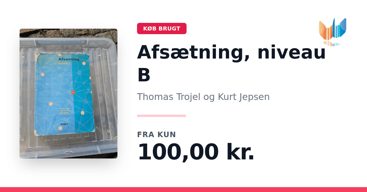 Lige nu kan du købe "Afsætning, niveau B" af Thomas Trojel og Kurt Jepsen til kun 100,00 kr. Bogen du ser her er brugt, og i slidt stand. Vi har i øjeblikket 2 eksemplarer til salg af "Afsætning, niveau B", så husk at se de forskellige udgaver.
