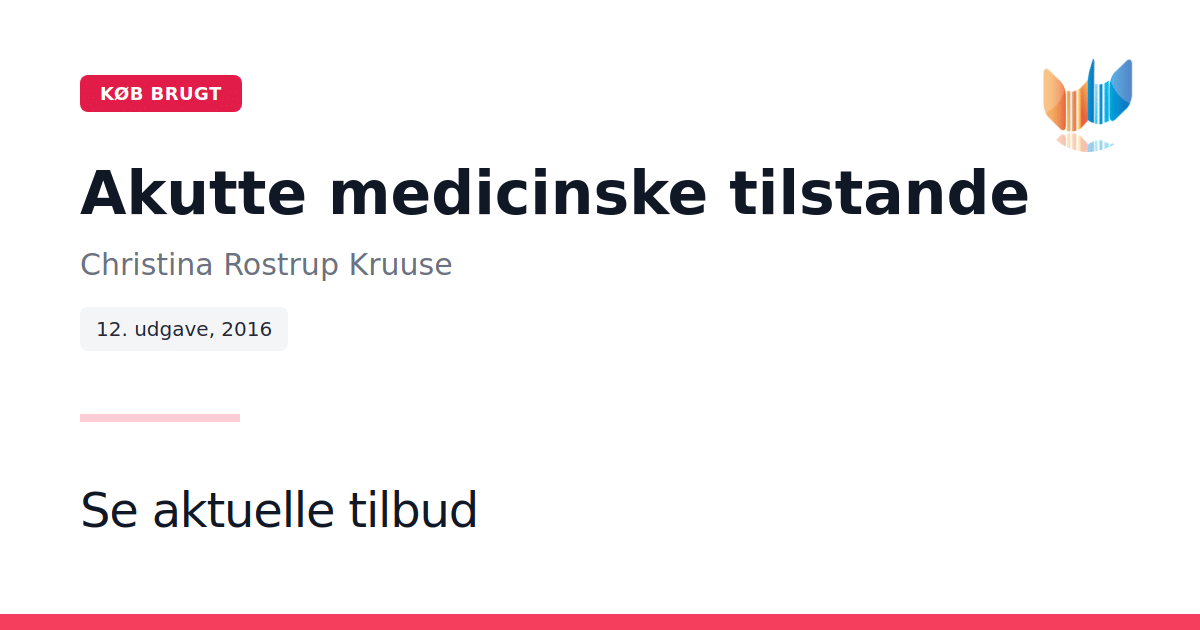 "Akutte medicinske tilstande", 12. udgave, er blevet grundigt revideret og opdateret med den seneste viden, så du altid er sikret at have de nyeste retningslinjer ved hånden. Forfatterne Nina Skavlan Godtfredsen, Christina Rostrup Kruuse, Andreas Munk Petersen, Jacob Tfelt-Hansen og Tina Vilsbøll har indarbejdet de nyeste data inden for kardiologi og psykiatri, og der er nu også tilføjet et særligt psykiatrisk koncept fra FADL’s Forlag A/S. Bogens nye og læsevenlige format gør det nemt og hurtigt at slå de relevante kapitler op, når der skal træffes beslutninger om diagnosticering og behandling af akutte, livstruende tilstande. Denne praktiske og opdaterede håndbog er et uundværligt redskab for medicinstuderende i klinikken samt for personale på skadestuer, modtagecentre og intensivafdelinger.