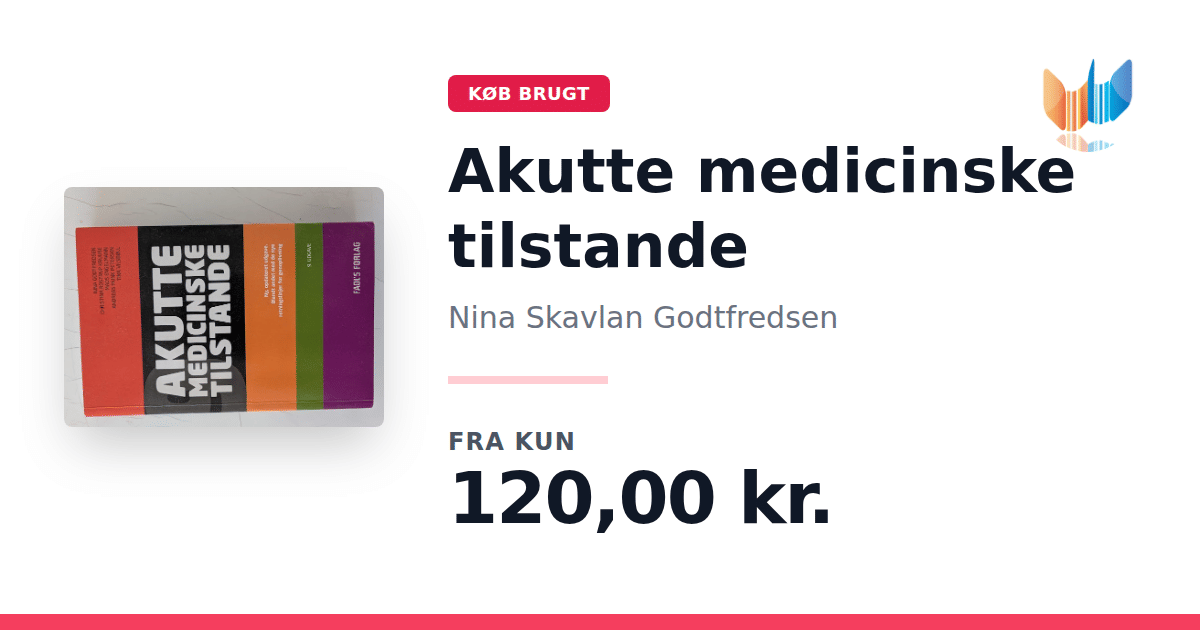 Lige nu kan du købe "Akutte medicinske tilstande" af Nina Skavlan Godtfredsen til kun 120,00 kr. Bogen du ser her er brugt, og i god stand. Vi har i øjeblikket 2 eksemplarer til salg af "Akutte medicinske tilstande", så husk at se de forskellige udgaver.