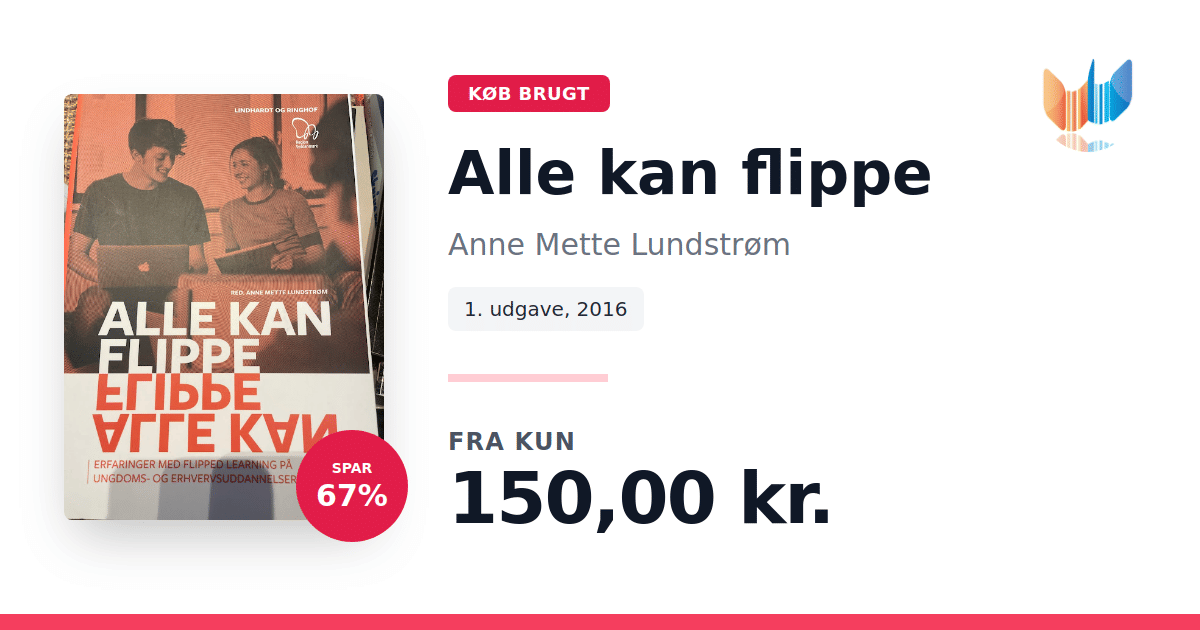 Lige nu kan du købe "Alle kan flippe" af Anne Mette Lundstrøm til kun 150,00 kr. Du sparer hele 67% af nyprisen! Bogen du ser her er brugt, og i perfekt stand. Vi har i øjeblikket kun et enkelt eksemplar til salg af "Alle kan flippe", så slå til mens du kan!