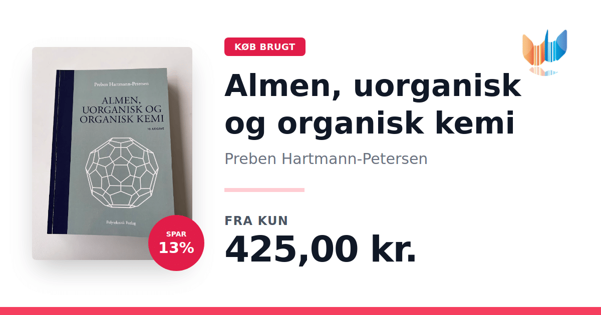 Lige nu kan du købe "Almen, uorganisk og organisk kemi" af Preben Hartmann-Petersen til kun 425,00 kr. Du sparer hele 13% af nyprisen! Bogen du ser her er brugt, og i perfekt stand. Vi har i øjeblikket 7 eksemplarer til salg af "Almen, uorganisk og organisk kemi", så husk at se de forskellige udgaver.
