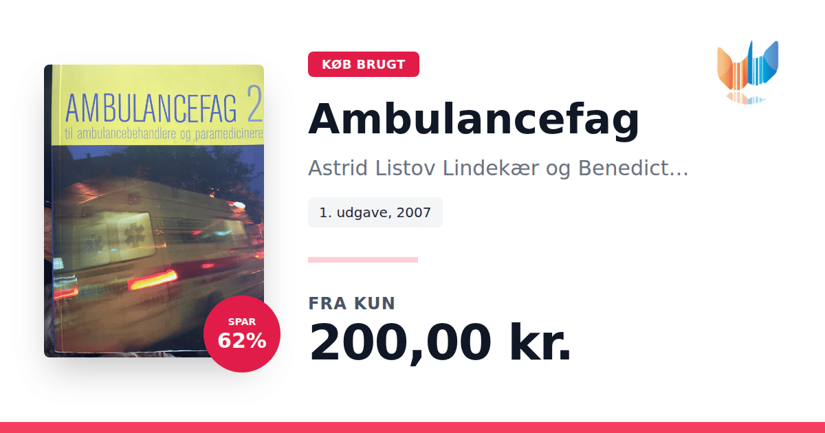 Lige nu kan du købe "Ambulancefag" af Astrid Listov Lindekær og Benedict Kjærgaard til kun 200,00 kr. Du sparer hele 62% af nyprisen! Bogen du ser her er brugt, og i god stand. Vi har i øjeblikket 2 eksemplarer til salg af "Ambulancefag", så husk at se de forskellige udgaver.