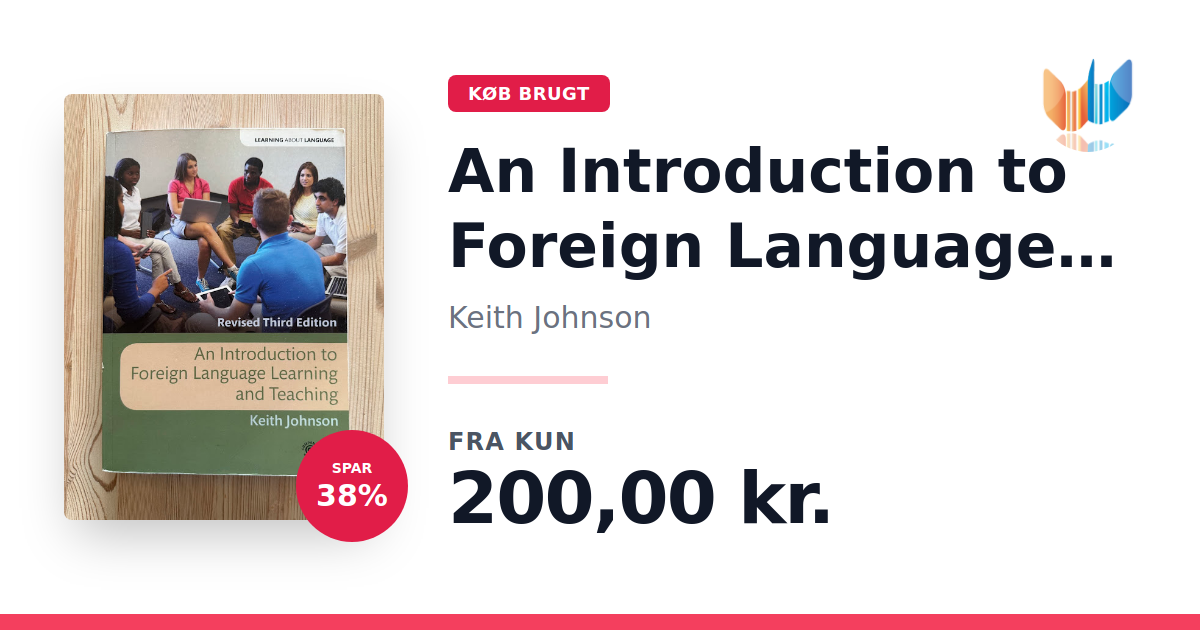 Lige nu kan du købe "An Introduction to Foreign Language Learning and Teaching" af Keith Johnson til kun 200,00 kr. Du sparer hele 38% af nyprisen! Bogen du ser her er brugt, og i god stand. Vi har i øjeblikket kun et enkelt eksemplar til salg af "An Introduction to Foreign Language Learning and Teaching", så slå til mens du kan!