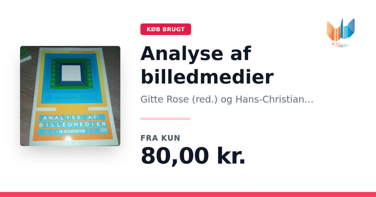 Lige nu kan du købe "Analyse af billedmedier" af Gitte Rose (red.) og Hans-Christian Christiansen (red.) til kun 80,00 kr. Bogen du ser her er brugt, og i god stand. Vi har i øjeblikket 4 eksemplarer til salg af "Analyse af billedmedier", så husk at se de forskellige udgaver.