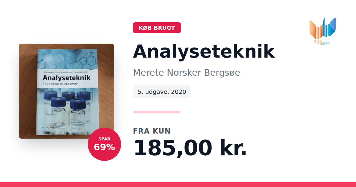 Lige nu kan du købe "Analyseteknik" af Merete Norsker Bergsøe til kun 185,00 kr. Du sparer hele 69% af nyprisen! Bogen du ser her er brugt, og i god stand. Vi har i øjeblikket 4 eksemplarer til salg af "Analyseteknik", så husk at se de forskellige udgaver.