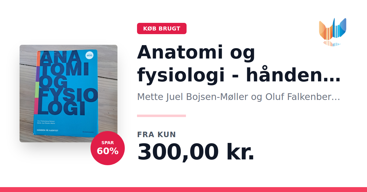 Lige nu kan du købe "Anatomi og fysiologi - hånden på hjertet" af Mette Juel Bojsen-Møller og Oluf Falkenberg Nielsen til kun 300,00 kr. Du sparer hele 60% af nyprisen! Bogen du ser her er brugt, og i perfekt stand. Vi har i øjeblikket kun et enkelt eksemplar til salg af "Anatomi og fysiologi - hånden på hjertet", så slå til mens du kan!