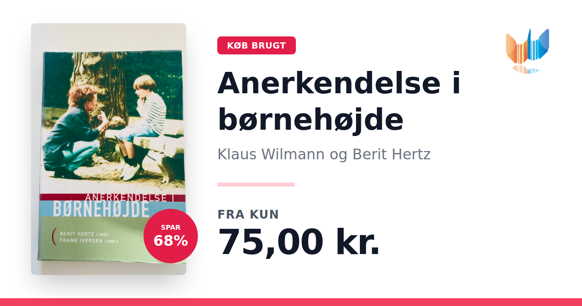 Lige nu kan du købe "Anerkendelse i børnehøjde" af Klaus Wilmann og Berit Hertz til kun 75,00 kr. Du sparer hele 68% af nyprisen! Bogen du ser her er brugt, og i god stand. Vi har i øjeblikket 5 eksemplarer til salg af "Anerkendelse i børnehøjde", så husk at se de forskellige udgaver.