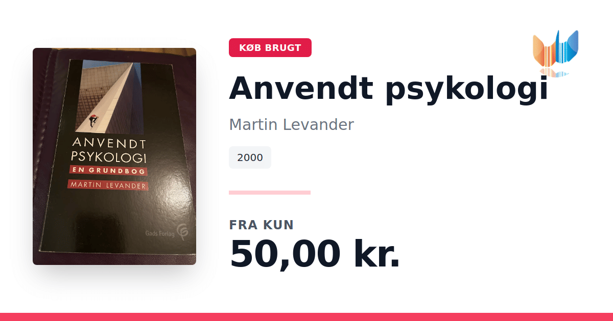 Lige nu kan du købe "Anvendt psykologi" af Martin Levander til kun 50,00 kr. Bogen du ser her er brugt, og i perfekt stand. Vi har i øjeblikket kun et enkelt eksemplar til salg af "Anvendt psykologi", så slå til mens du kan!