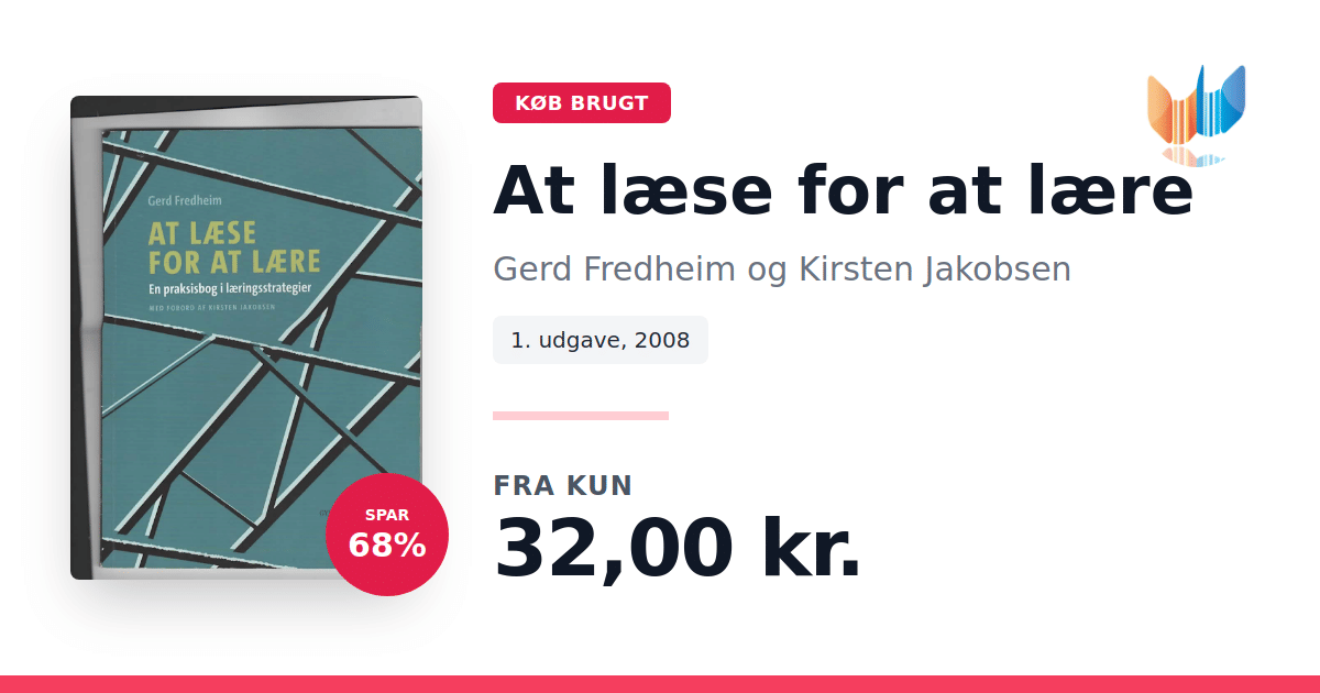 Lige nu kan du købe "At læse for at lære" af Gerd Fredheim og Kirsten Jakobsen til kun 32,00 kr. Du sparer hele 68% af nyprisen! Bogen du ser her er brugt, og i perfekt stand. Vi har i øjeblikket 3 eksemplarer til salg af "At læse for at lære", så husk at se de forskellige udgaver.
