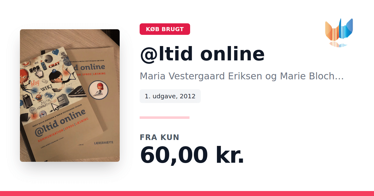 Lige nu kan du købe "@ltid online" af Maria Vestergaard Eriksen og Marie Bloch Jespersen til kun 60,00 kr. Bogen du ser her er brugt, og i perfekt stand. Vi har i øjeblikket kun et enkelt eksemplar til salg af "@ltid online", så slå til mens du kan!