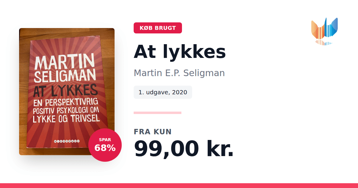 Lige nu kan du købe "At lykkes" af Martin E.P. Seligman til kun 99,00 kr. Du sparer hele 68% af nyprisen! Bogen du ser her er brugt, og i god stand. Vi har i øjeblikket kun et enkelt eksemplar til salg af "At lykkes", så slå til mens du kan!
