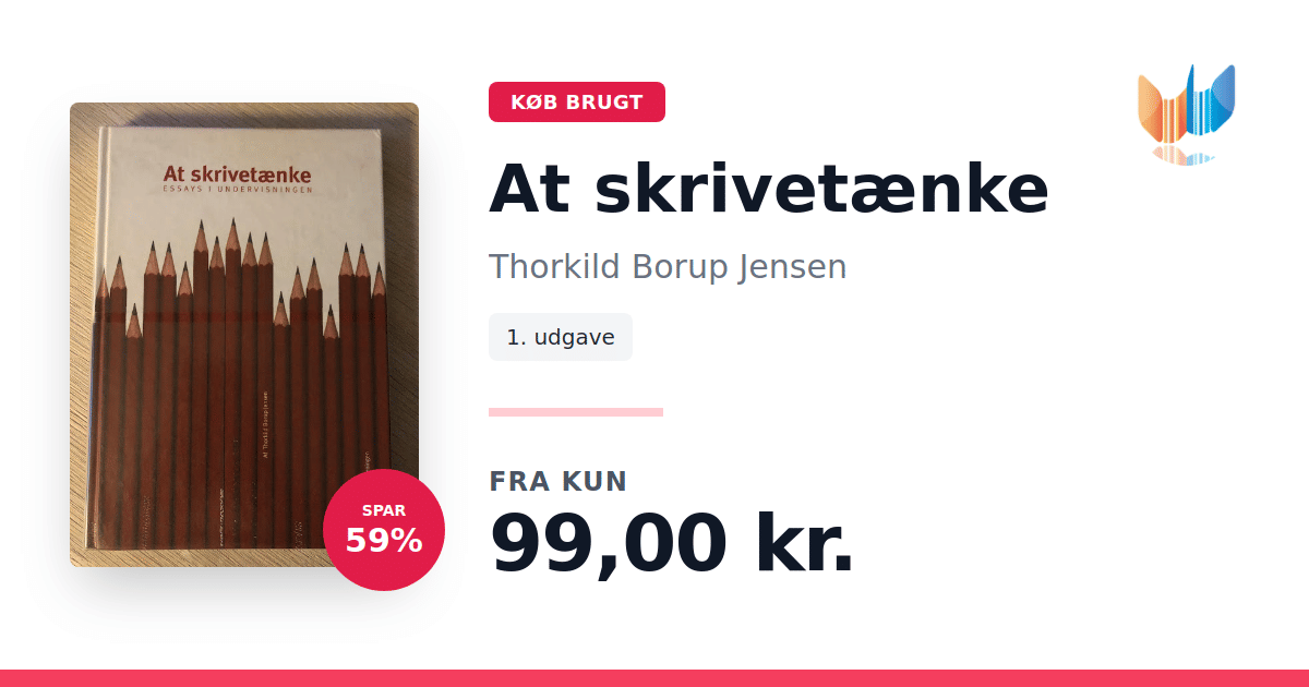 Lige nu kan du købe "At skrivetænke" af Thorkild Borup Jensen til kun 99,00 kr. Du sparer hele 59% af nyprisen! Bogen du ser her er brugt, og i perfekt stand. Vi har i øjeblikket kun et enkelt eksemplar til salg af "At skrivetænke", så slå til mens du kan!
