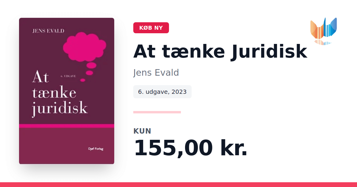 "At tænke Juridisk" er en let tilgængelig introduktion til juridisk metode – den tilgang, som både domstole og andre, der skal redegøre for konkrete retlige problemstillinger, anvender. Bogen giver læseren et indblik i, hvordan man systematisk kan nærme sig komplekse juridiske dilemmaer gennem en struktureret metode. Forfatteren, Jens Evald, f. 1961, er dr.jur. og professor ved Juridisk Institut, Aarhus Universitet samt voldgiftsdommer ved Court of Arbitration for Sport (CAS) i Lausanne, Schweiz. Med sin omfattende erfaring inden for bl.a. retsfilosofi, privatret og sportsret, præsenterer Evald i denne sjette udgave fra 2023 en kort, men koncentreret fremstilling på 108 sider, der gør juridisk tænkning tilgængelig for alle.