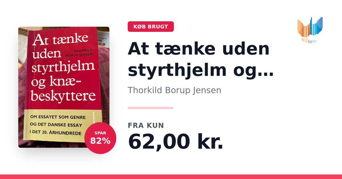 Lige nu kan du købe "At tænke uden styrthjelm og knæbeskyttere" af Thorkild Borup Jensen til kun 62,00 kr. Du sparer hele 82% af nyprisen! Bogen du ser her er brugt, og i god stand. Vi har i øjeblikket kun et enkelt eksemplar til salg af "At tænke uden styrthjelm og knæbeskyttere", så slå til mens du kan!