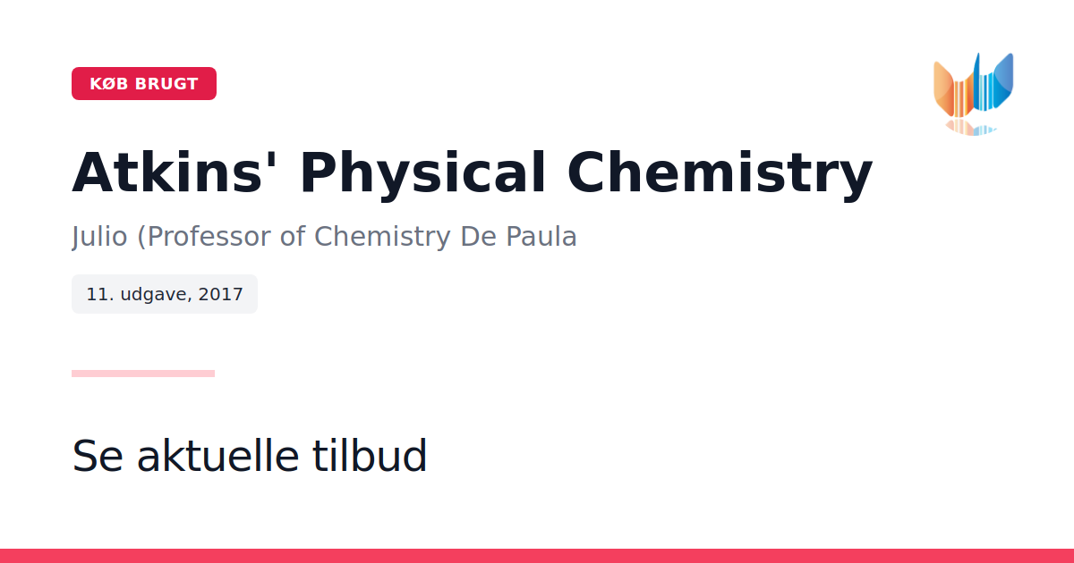 Atkins’ Physical Chemistry, 11. udgave, er forfattet af Peter Atkins, Julio de Paula og James Keeler og udgivet af Oxford University Press i 2022. Med sine 960 sider er den stadig det foretrukne værk for studerende og undervisere, der ønsker et dybdegående og samtidig overskueligt indblik i fysisk kemi. Teksten er omstruktureret i selvstændige Topics, hvilket giver undervisere fleksibilitet til at sammensætte forløb og studerende et mere læsevenligt format. Hvert Topic indleder med centrale spørgsmål, som besvares gennem trinvis matematisk analyse og illustrative eksempler. Den nyeste udgave er udvidet med ekstra matematikstøtte og ’Chemist’s Toolkits’ - kompakte oversigter over de vigtigste formler og teknikker placeret, præcis hvor de behøves. Dermed bliver komplekse beregninger mere tilgængelige, uden at sammenhængen til kemien går tabt. Afslutningsvis præsenterer tjeklister i hver Topic de væsentligste begreber og gennemgangspunkter. Den kombinerede dækning af teori, pædagogisk struktur og stærk matematikprofil gør Atkins’ Physical Chemistry til den uundværlige lærebog inden for fysisk kemi.
