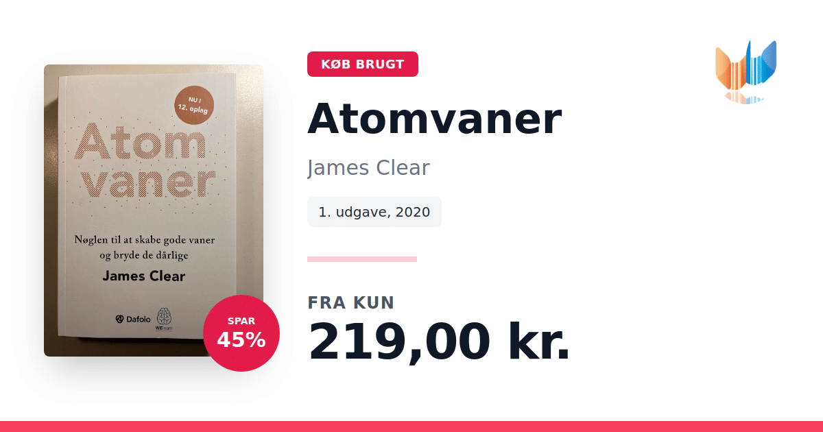 Lige nu kan du købe "Atomvaner" af James Clear til kun 219,00 kr. Du sparer hele 45% af nyprisen! Bogen du ser her er brugt, og i perfekt stand. Vi har i øjeblikket kun et enkelt eksemplar til salg af "Atomvaner", så slå til mens du kan!