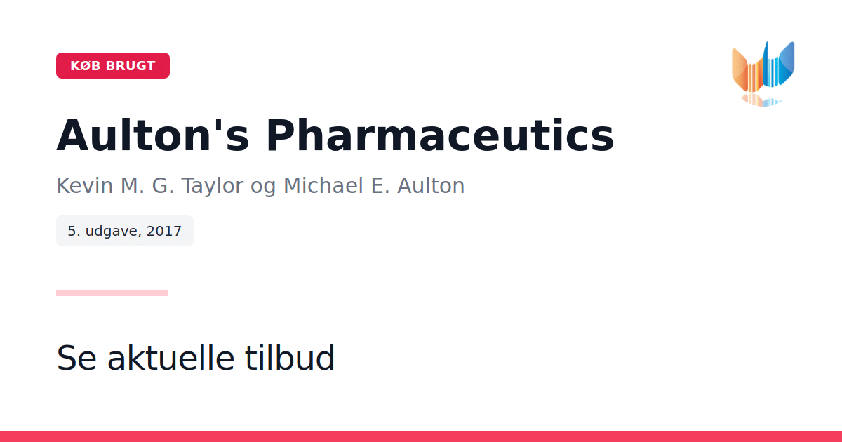 Aulton’s Pharmaceutics: The Design and Manufacture of Medicines, 5. udgave (2017) af Kevin M. G. Taylor og Michael E. Aulton er et autoritativt lærebogsværk udgivet af Elsevier - Health Sciences Division. Med sine 936 sider i paperbackformat tilbyder den en omfattende introduktion til farmaceutisk teknologi. Bogen fungerer som et komplet kursus i formulering og fremstilling af lægemidler. Den gennemgår nøje alle trin fra råstofvalg over produktionsprocesser til kvalitetskontrol og pakning. Komplekse teorier og metoder præsenteres i et klart og overskueligt sprog med illustrative eksempler. Farmaceutics er et af de mest alsidige områder inden for farmaceutisk videnskab, og en grundig forståelse er uundværlig for apotekere og forskere, der skal omdanne aktive stoffer til sikre og effektive behandlingsformer. Med denne bog får du et solidt fundament til både eksamener og forskningsprojekter. Den femte udgave er nøje opdateret med den nyeste viden og praksis. Forfatter- og redaktionsteamet leverer en velafbalanceret kombination af bredde, dybde og praktiske anvendelser, som sikrer, at bogen forbliver det førende standardværk i sit felt.