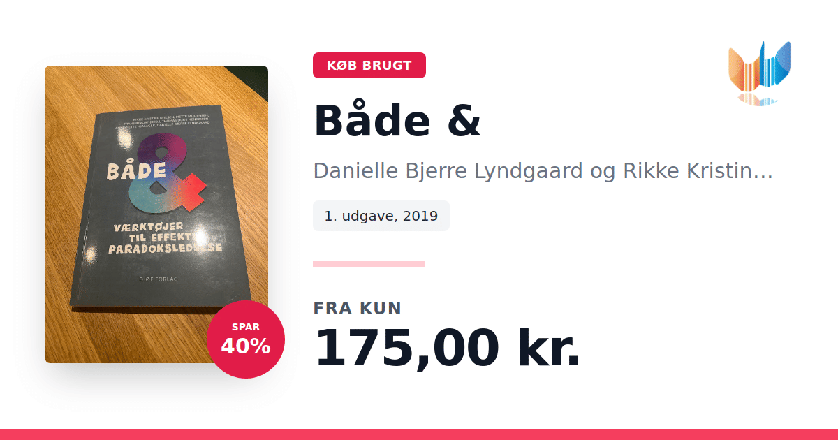 Udgivet i 2019 er Både & en forskningsbaseret lederhåndbog, der hjælper dig med at tackle de paradokser, der opstår i moderne virksomheder og organisationer. Forfatterne kombinerer solid forskning med konkrete erfaringer fra praksis og giver dig redskaber til at mestre det både-og mindset. Et paradoks opstår, når to strategiske handlemuligheder både er gensidigt udelukkende og samtidig uadskilleligt forbundne - et valg er derfor kun en midlertidig løsning. I stedet for at vælge enten drift eller udvikling, leadership eller management, lærer du her at navigere mellem yderpunkterne. Med fokus på både-og ledelse præsenterer bogen fem faser i paradokshåndteringen, bidrag fra eksperter som Danielle Bjerre Lyndgaard, Rikke Kristine Nielsen, Anne-Mette Hjalager med flere, samt en trin-for-trin-guide til at implementere både-og-tilgangen i din organisation. Som resultat får du 15 skræddersyede ledelsesværktøjer og 25 pejlemærker, der viser vej gennem komplekse beslutningsfelter, så du kan forene modstridende mål og skabe bæredygtig vækst og innovation.