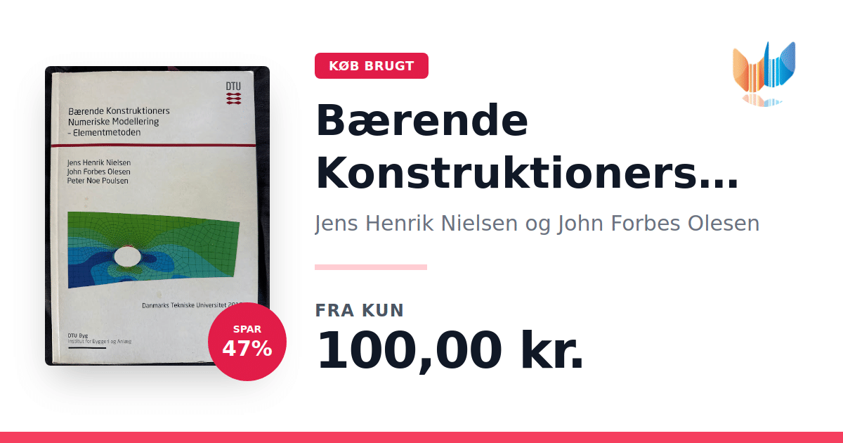 Lige nu kan du købe "Bærende Konstruktioners Numeriske Modellering - Elementmetoden" af Jens Henrik Nielsen og John Forbes Olesen til kun 100,00 kr. Du sparer hele 47% af nyprisen! Bogen du ser her er brugt, og i god stand. Vi har i øjeblikket kun et enkelt eksemplar til salg af "Bærende Konstruktioners Numeriske Modellering - Elementmetoden", så slå til mens du kan!