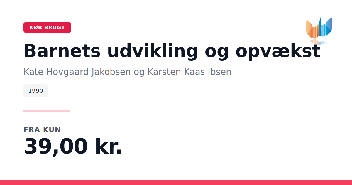 Lige nu kan du købe "Barnets udvikling og opvækst" af Kate Hovgaard Jakobsen og Karsten Kaas Ibsen til kun 39,00 kr. Bogen du ser her er brugt, og i god stand. Vi har i øjeblikket kun et enkelt eksemplar til salg af "Barnets udvikling og opvækst", så slå til mens du kan!