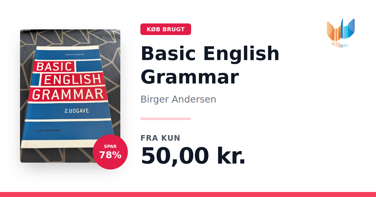 Lige nu kan du købe "Basic English Grammar" af Birger Andersen til kun 50,00 kr. Du sparer hele 78% af nyprisen! Bogen du ser her er brugt, og i perfekt stand. Vi har i øjeblikket 2 eksemplarer til salg af "Basic English grammar", så husk at se de forskellige udgaver.