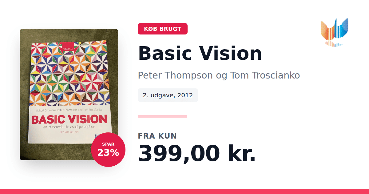 Lige nu kan du købe "Basic Vision" af Peter Thompson og Tom Troscianko til kun 399,00 kr. Du sparer hele 23% af nyprisen! Bogen du ser her er brugt, og i perfekt stand. Vi har i øjeblikket kun et enkelt eksemplar til salg af "Basic Vision", så slå til mens du kan!