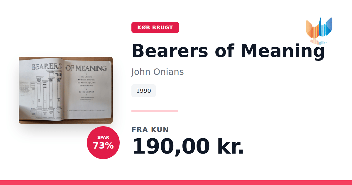 Lige nu kan du købe "Bearers of Meaning" af John Onians til kun 190,00 kr. Du sparer hele 73% af nyprisen! Bogen du ser her er brugt, og i perfekt stand. Vi har i øjeblikket kun et enkelt eksemplar til salg af "Bearers of Meaning", så slå til mens du kan!
