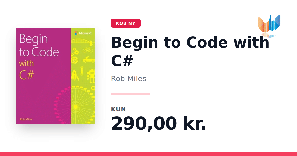 Lige nu kan du købe "Begin to Code with C#" af Rob Miles til kun 290,00 kr. Bogen du ser her er ny, og kan købe gennem vores partner Plusbog.