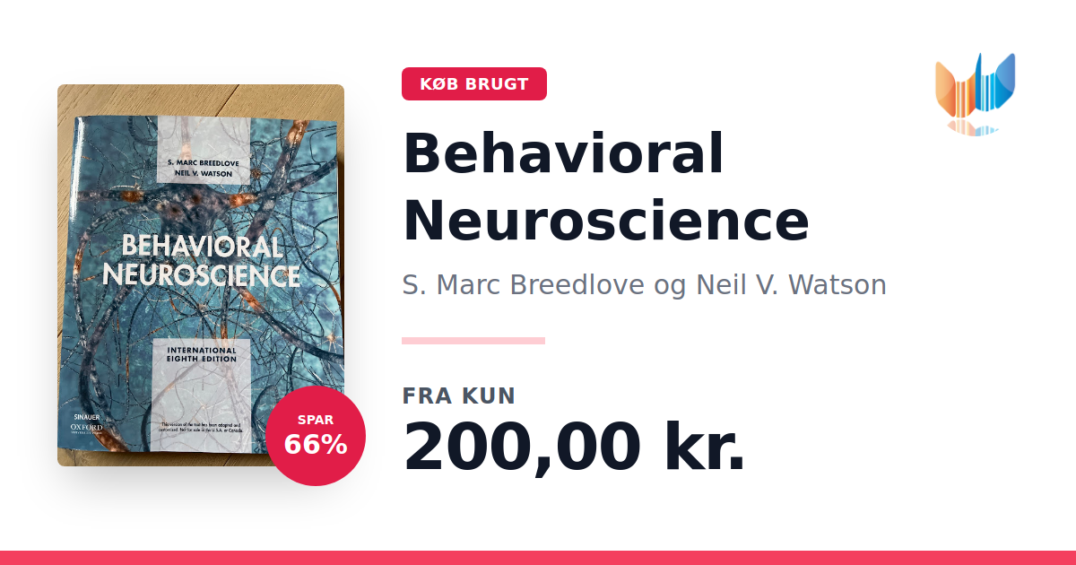 Lige nu kan du købe "Behavioral Neuroscience" af S. Marc Breedlove og Neil V. Watson til kun 200,00 kr. Du sparer hele 66% af nyprisen! Bogen du ser her er brugt, og i perfekt stand. Vi har i øjeblikket kun et enkelt eksemplar til salg af "Behavioral Neuroscience", så slå til mens du kan!