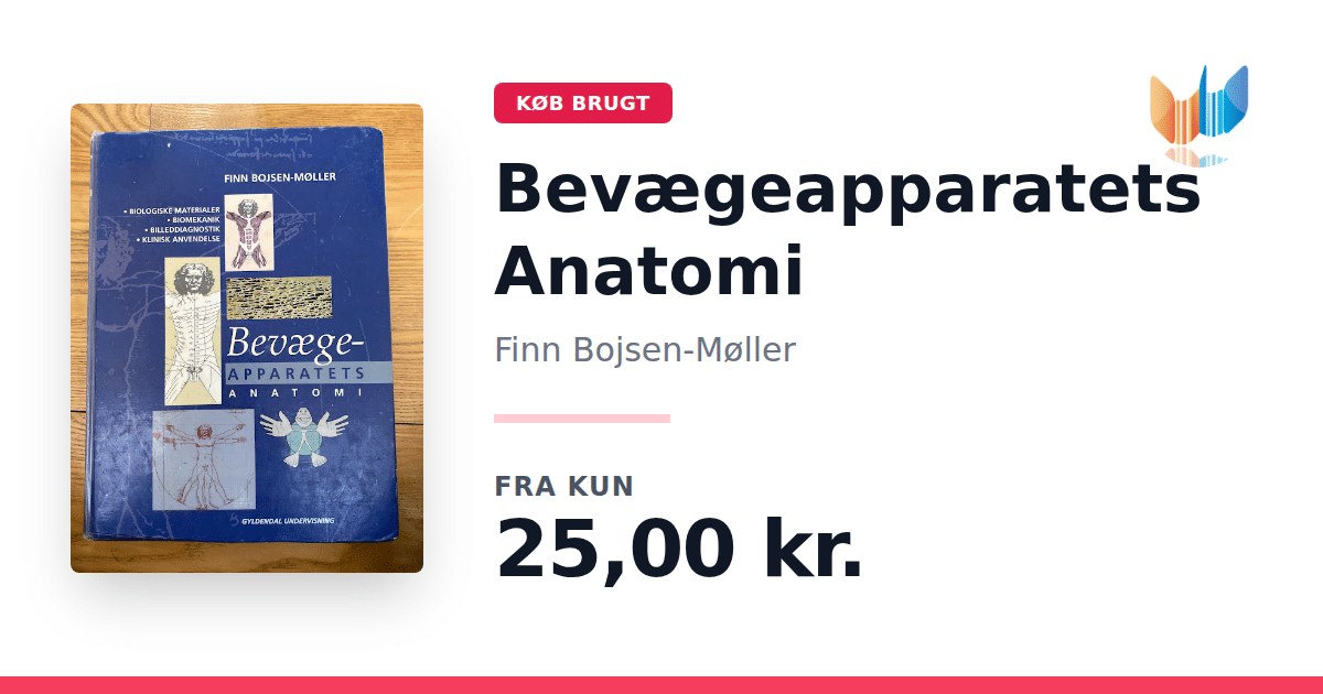 Lige nu kan du købe "Bevægeapparatets Anatomi" af Finn Bojsen-Møller til kun 25,00 kr. Bogen du ser her er brugt, og i god stand. Vi har i øjeblikket 6 eksemplarer til salg af "Bevægeapparatets anatomi", så husk at se de forskellige udgaver.
