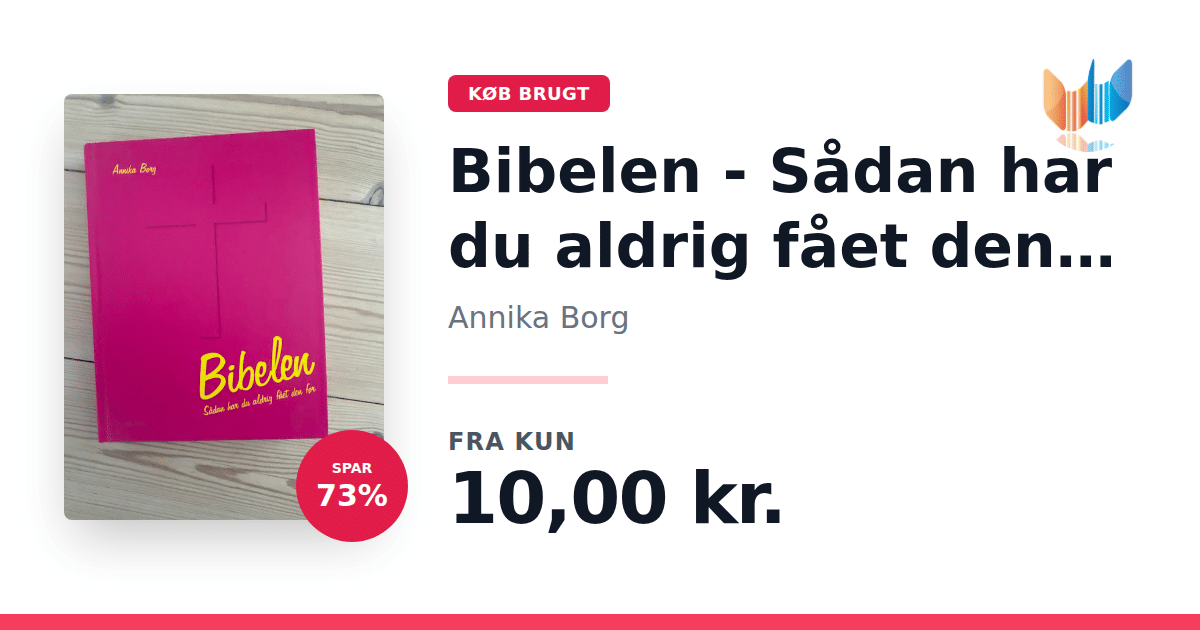 Lige nu kan du købe "Bibelen - Sådan har du aldrig fået den før" af Annika Borg til kun 10,00 kr. Du sparer hele 73% af nyprisen! Bogen du ser her er brugt, og i perfekt stand. Vi har i øjeblikket kun et enkelt eksemplar til salg af "Bibelen - Sådan har du aldrig fået den før", så slå til mens du kan!