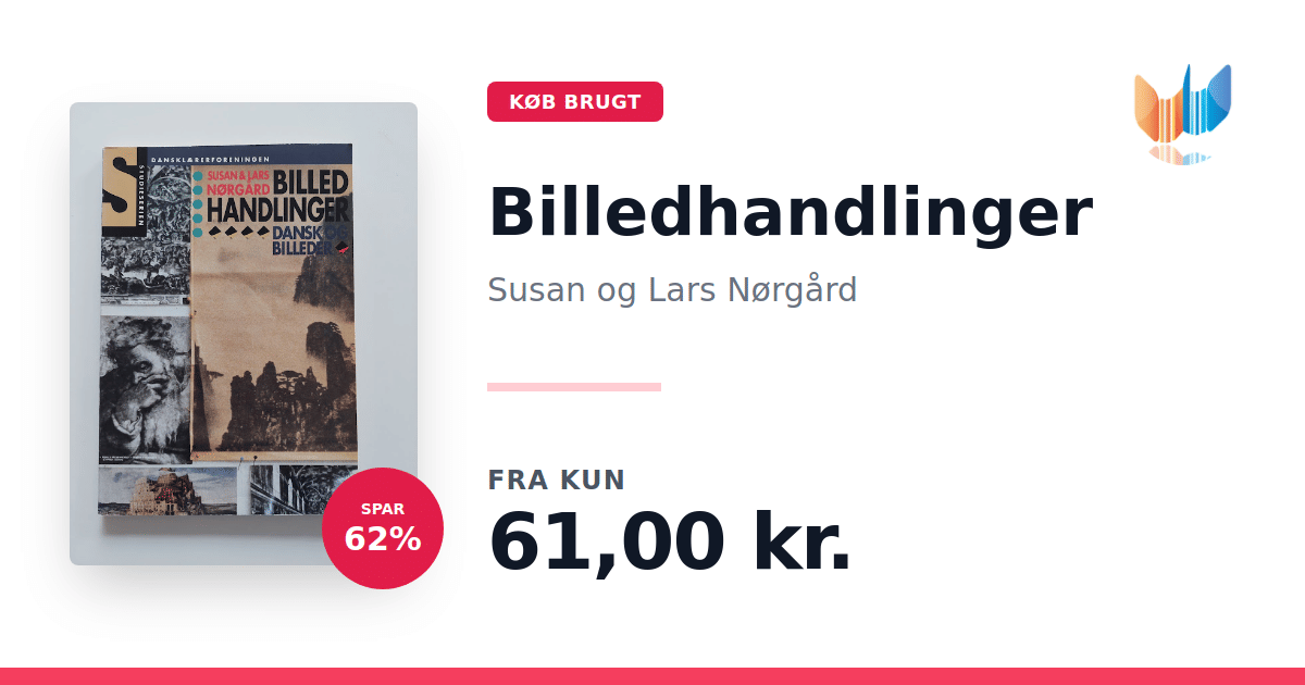Lige nu kan du købe "Billedhandlinger" af Susan og Lars Nørgård til kun 61,00 kr. Du sparer hele 62% af nyprisen! Bogen du ser her er brugt, og i perfekt stand. Vi har i øjeblikket kun et enkelt eksemplar til salg af "Billedhandlinger", så slå til mens du kan!