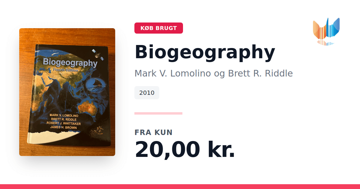 Lige nu kan du købe "Biogeography" af Mark V. Lomolino og Brett R. Riddle til kun 20,00 kr. Bogen du ser her er brugt, og i god stand. Vi har i øjeblikket kun et enkelt eksemplar til salg af "Biogeography", så slå til mens du kan!